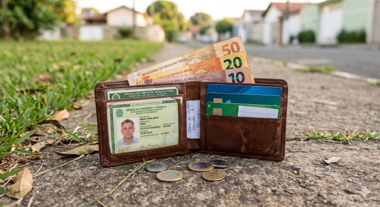 No interior estavam documentos pessoais, cartões bancários e mais de mil reais em dinheiro — nenhum item foi retirado.